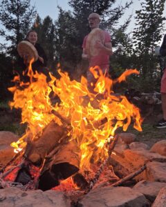 Nie zabrakło też czasu na wspólne świętowanie podczas tańca i ruchu spontanicznego, ogniska zaaranżowanego przez Kamila i Monię oraz koncertu gitarowego, który zagrał dla nas Cezary. Korzystaliśmy z pięknej pogody, pływając w jeziorze, odpoczywając na pomoście i w hamakach. A przede wszystkim cieszyliśmy się nawzajem swoją obecnością. Wspaniale było przeglądać się jeden w drugim jak w lustrze, zauważając jak wiele podobnych przechodzimy procesów i jak bardzo możemy się wesprzeć w naszej podróży świadomego wglądu w siebie i uwalniania tego, co już nam nie służy. Byliśmy więc dla siebie zarówno lustrami odkrywanej w sobie nieświadomości, jak i światła naszego „wyższego Ja”.